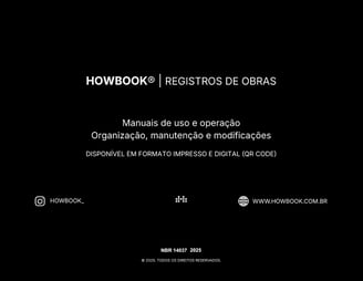 Além de cliente, como sou engenheiro, reconheço a importância tanto para o arquiteto, designer de interiores ou a mão de obra de manutenção, utilizando os manuais da Howbook para facilitar o trabalho a ser executado. Sem riscos de transtornos para o cliente com aquele furo no lugar errado etc